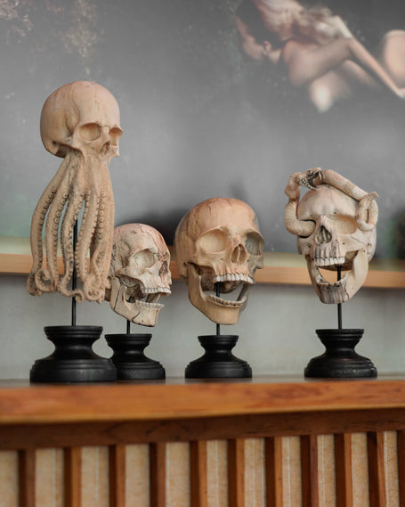 Tarmarind Wooden Skull With Snake Carving Antler - 6Y/107