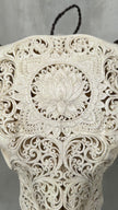 A large water buffalo skull that is engraved by hand by talented Balinese craftsmen. Their fathers have passed on the age-old craft of engraving to their sons. This skull is completely carved open. The carving is of exceptionally high quality. Engraved into the skull is a beautiful Big Lotus Motif.