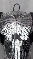 A large buffalo skull with glass mosaic inlay. The skull has been fully decorated by hand with much care. It is an unusual, decorative piece.